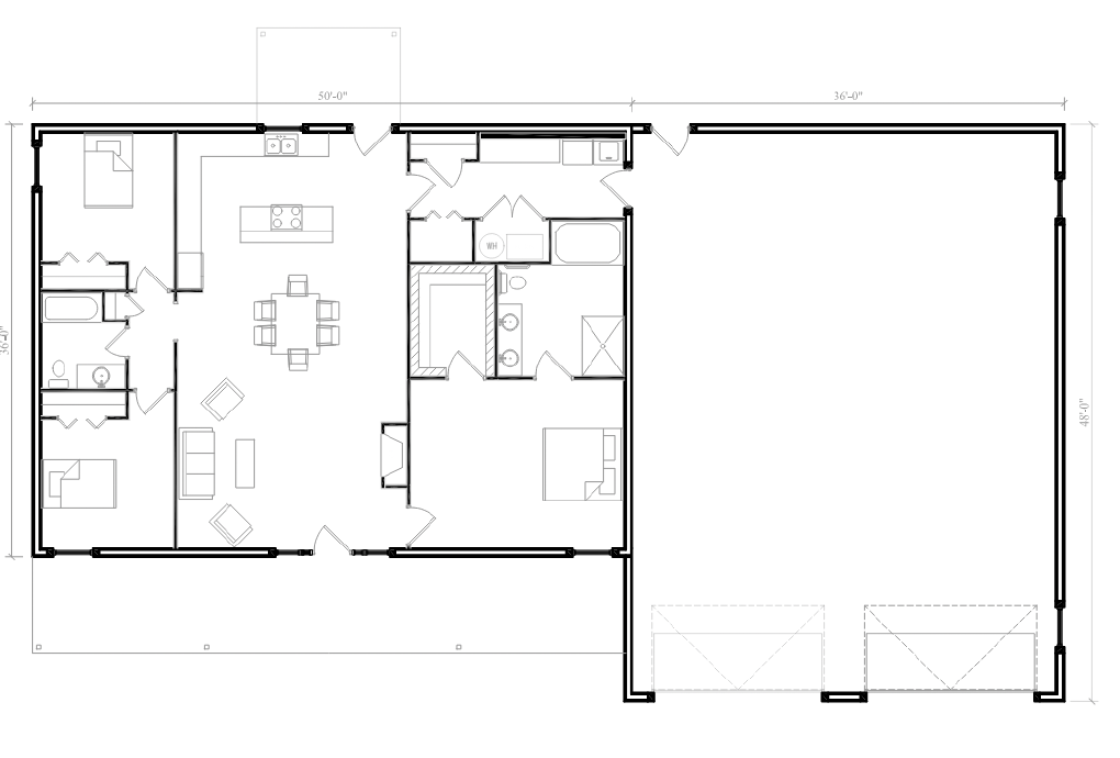 This convenient floor plan packs a lot into the space without feeling crowded. The master suite with bath and oversized closet/safe room space is separate from the other bedrooms that share their own bathroom. The living space is open with plenty of room for dining, entertaining, and relaxing. The mudroom connects the shop space to the kitchen with room for utilities and laundry space.